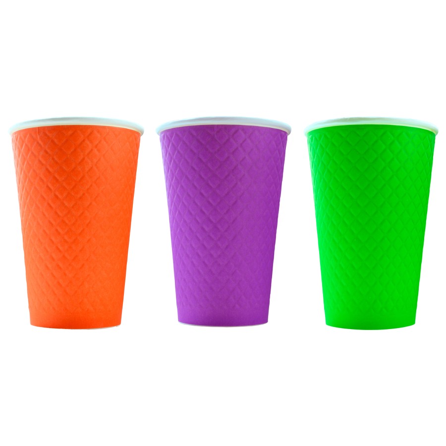 Двухслойный бумажный стакан 400 мл, рифленый Waffle цветной микс