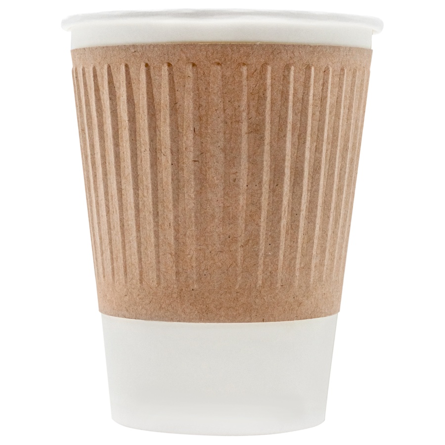 Двухслойный бумажный стакан с рифленой полосой 300 мл, Тетра Микс